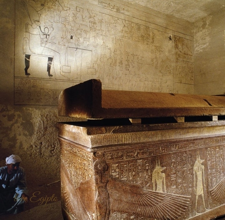 The sarcophagus of Horemheb is carved out of a block of red granite measuring 2.72m in length, 1.15m in width, and 1.41m in height (with the lid).